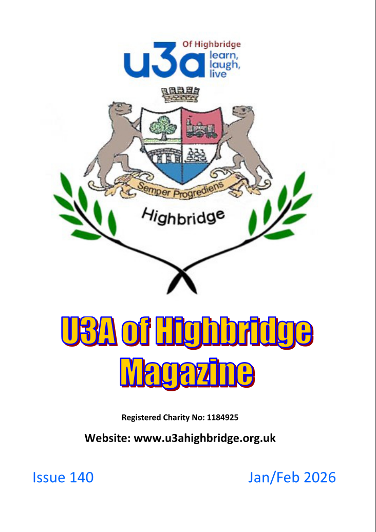 The Jan/Feb 2026 edition of the U3A of Highbridge Magazine can be found on the Magazine page on the Main Menu. For convenience a direct link to the Magazine is shown below.